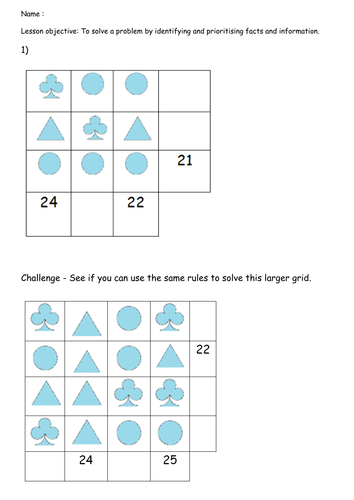 Shape Grid Puzzle Math Love from mathequalslove.net First equation s*s*c=16 => 2*2*c=16 => c=4. These shape equation puzzles are great to boost iq, logic and math skills. The difficulty of the math and letter puzzles is the equivalent of math grades 1 to 3. Cut up the greek letter pi below into five pieces as shown. Your challenge is to move 3 matches to show 2. Apr 17, 2019 · answer of this shapes math picture puzzle, can be viewed by clicking on the answer button. The iq puzzles on this page, our level 1 brain teasers, are a collection of number and math puzzles, shape pattern puzzles, shape sequence puzzles for kids, puzzles with dice and dominoes, time puzzles, letter puzzles and logic. Second equation t*t*t=27 => t=3.